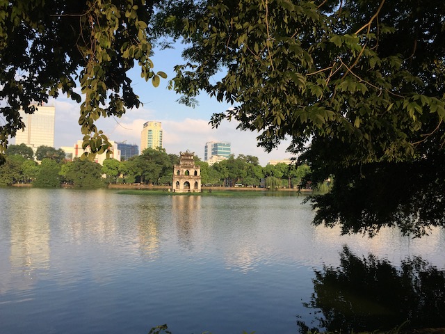 Die Entscheidung war gefallen, meine Erleichterung in diesem Moment unbeschreiblich groß. Hanoi sollte es sein, fünf Nächte dort alleine zu verbringen, konnte ich mir vorstellen. Der Flug Bali – Kuala Lumpur – Hanoi war sofort gefunden, das Hotel nahe dem Hoàn Kiếm See war in fünfzehn Minuten gebucht. Vielleicht fragt sich jemand, warum in der Nähe dieses Sees. Ein Foto und die Beschreibung auf einer Plattform für Reisetipps gab hier den Ausschlag. Es schien mir ein schöner Platz zum Spazierengehen, Bäume am Ufer haben einen Kühlungseffekt, das Zentrum war auch nicht weit entfernt. War auch tatsächlich ein für mich perfekter Platz, um die Stadt und ihre Menschen näher kennenzulernen.